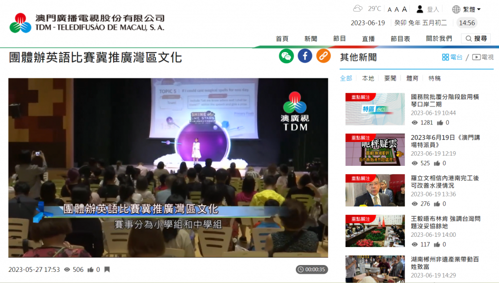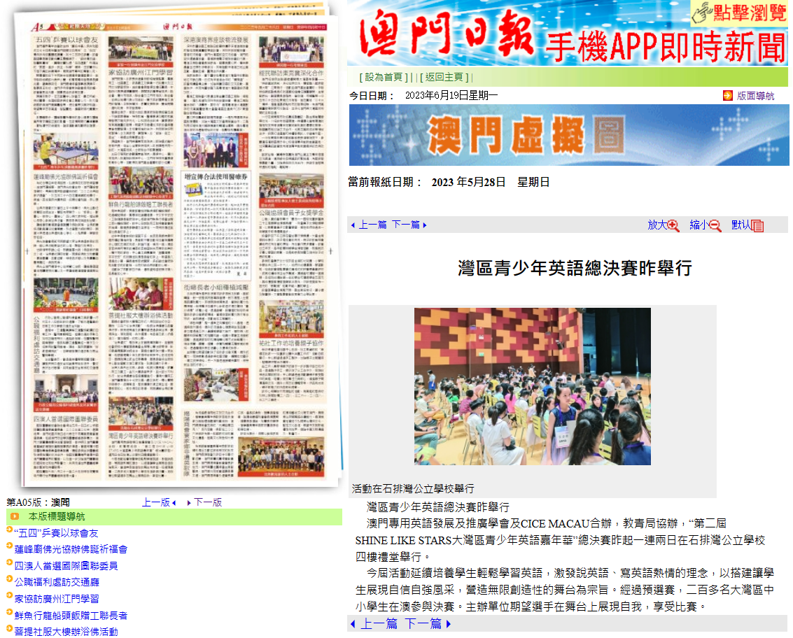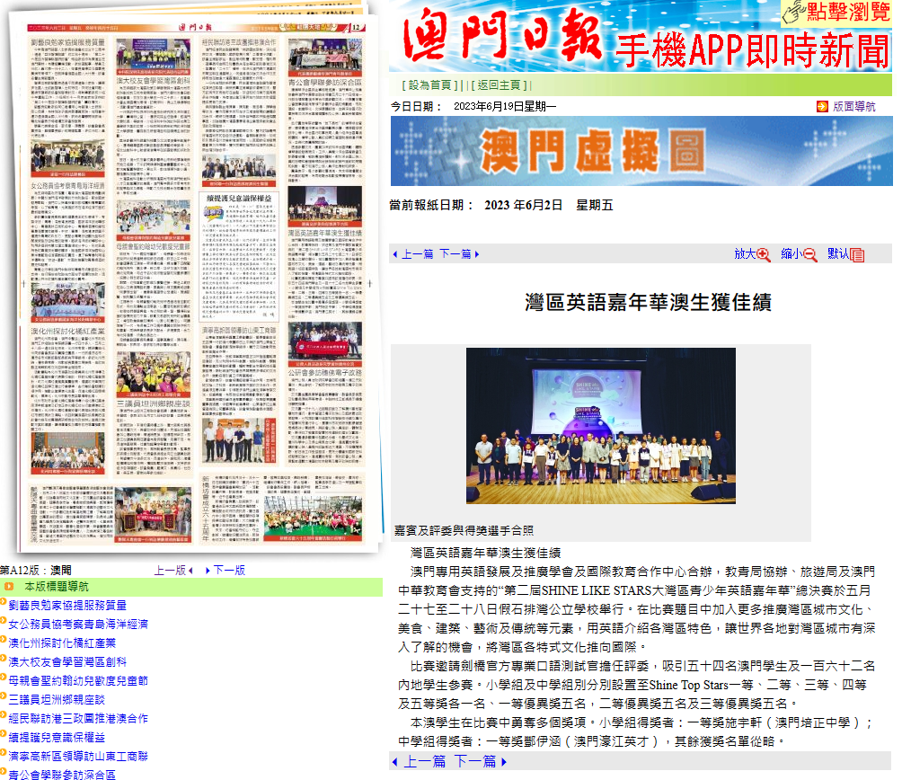 灣區英語嘉年華(Shine Like Stars)澳生獲佳績 -2023年6月2日媒體報道